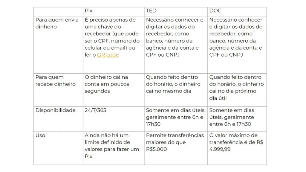 Pix, TED e DOC