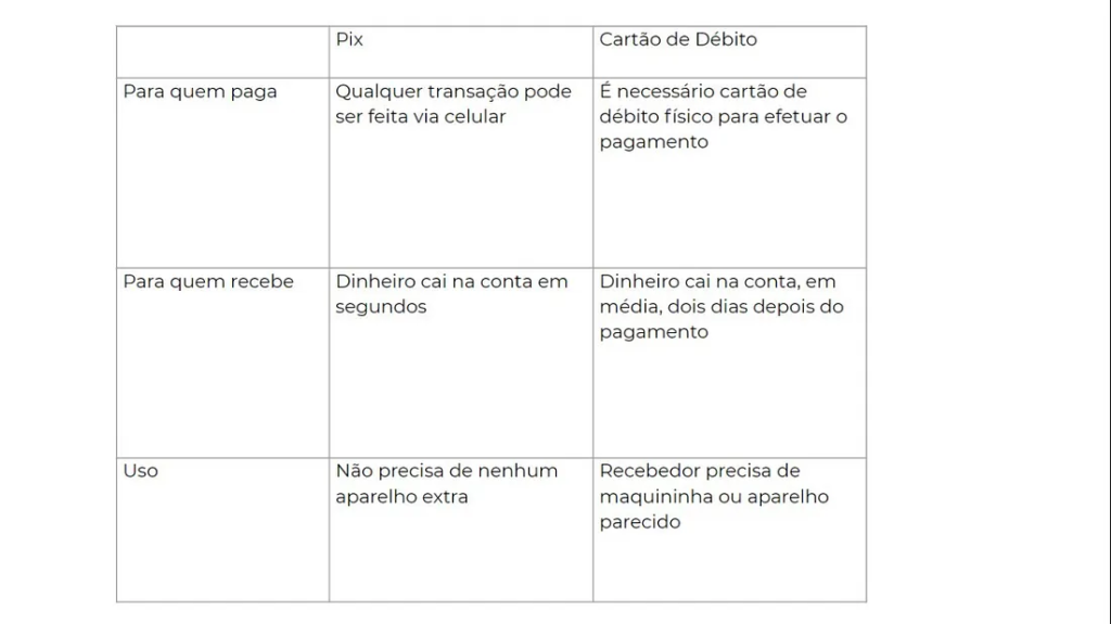 Pix e Cartão de Débito